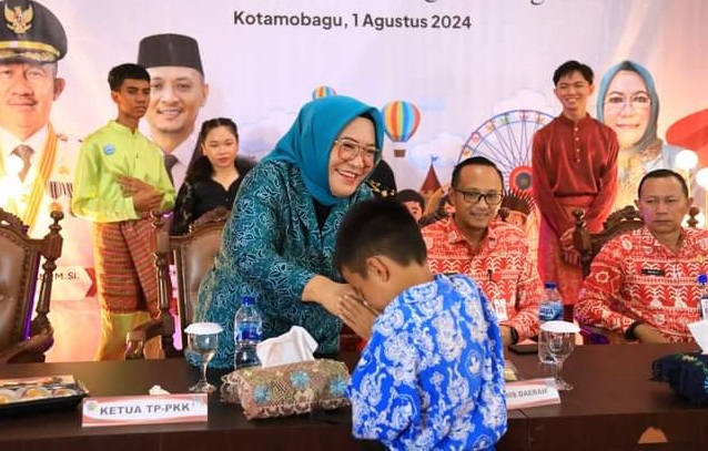 mediatotabuan.co, Kotamobagu – Dua orang siswa Sekolah Luar Biasa (SLB) Negeri Poyowa Besar 2, Kecamatan Kotamobagu Selatan, ikut ambil bagian pada kegiatan Peringatan Hari Anak Nasional ke-40, di Aula Rumah Dinas (Rudis) Wali Kota Kotamobagu, Kamis (01/08/2024).