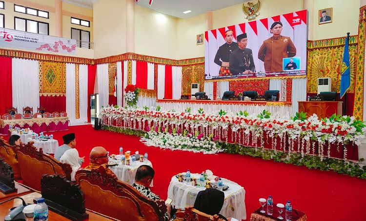 mediatotabuan.co, Bolmong – Penjabat (Pj) Bupati Bolaang Mongondow (Bolmong), dr Jusnan C Mokoginta MARS, menghadiri Rapat Paripurna Mendengarkan Pidato Kenegaraan Presiden Republik Indonesia dalam rangka HUT ke-79 Kemerdekaan RI Tahun 2024 pada sidang bersama DPR RI dan DPD RI, oleh Dewan Perwakilan Rakyat Daerah (DPRD) Kabupaten Bolmong, Jumat (16/08/2024).