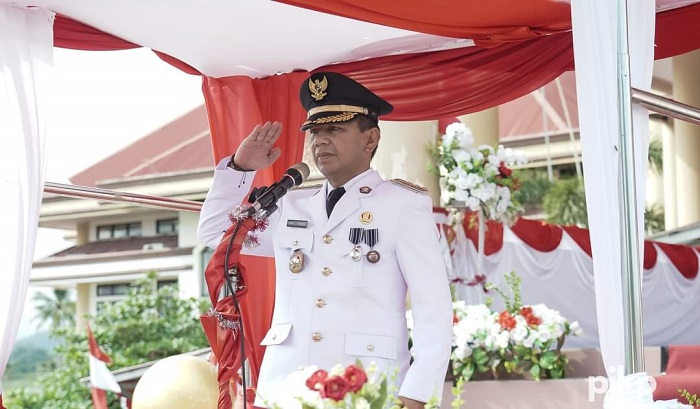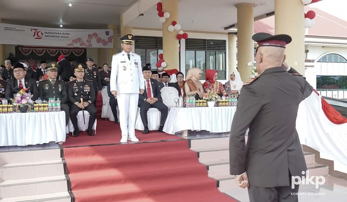 Pj Bupati Bolmong, dr Jusnan Mokoginta, saat menjadi Irup HUT Kemerdekaan RI ke-&9 di Kabupaten Bolmong. (Foto: Diskominfo Bolmong)