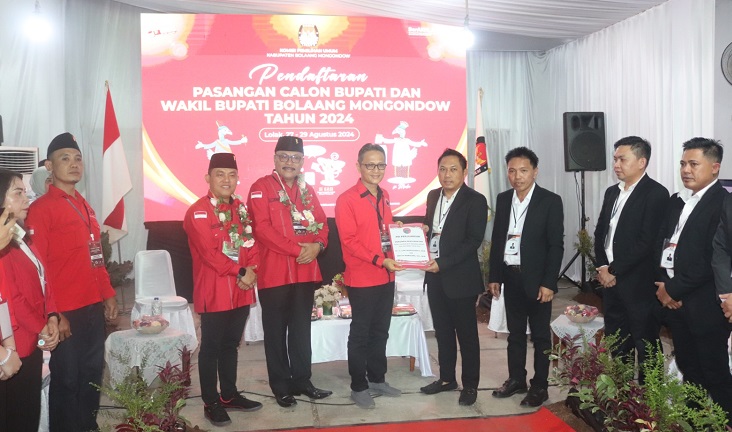 MEDIATOTABUAN, BOLMONG – Di hari terakhir penfaftaran bakal Pasangan Calon (Paslon) Bupati dan Wakil Bupati Kabupaten Bolaang Mongondow (Bolmong) Tahun 2024, Komisi Pemilihan Umum (KPU) Bolmong, menerima dua berkas Paslon yang mendaftar, Kamis (29/08/2024).