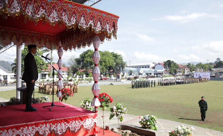Bertindak sebagai Inspektur Upacara (Irup) yang diikuti Forkoimda Kotamobagu, Instansi vertikal, pajabat eselon II Pemkot Kotamobagu, seluruh ASN, kepada desa tersebut, yakni Sekretaris Daerah (Sekda) Kotamobagu, Sofyan Mokoginta SH ME.