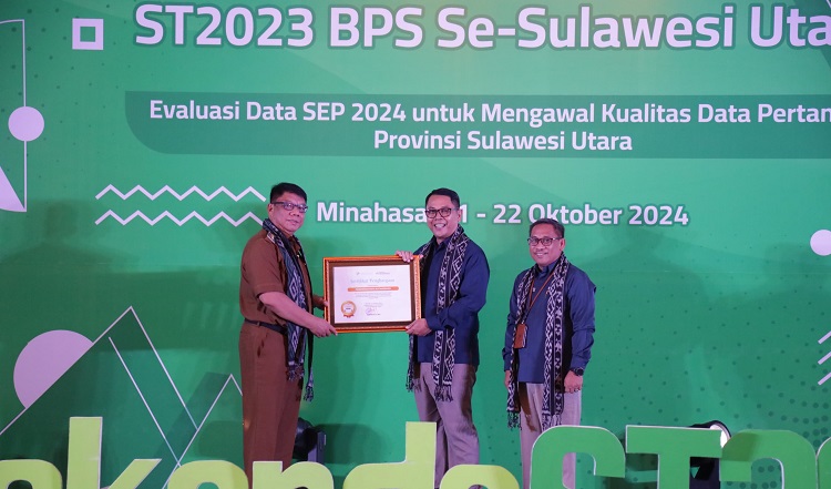 Penghargaan oleh Badan Pusat Statistik (BPS) Republik Indonesia ini, diserahkan pada acara Rapat Koordinasi Daerah (Rakorda) Survei Pertanian 2023 BPS se-Sulawesi Utara, dengan tema “Evaluasi Data Survei Ekonomi Pertanian (SEP) 2024 untuk Mengawal Kualitas Data Pertanian Provinsi Sulawesi Utara”, Senin (21/10/2024).
