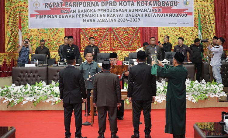 MEDIATOTABUAN, KOTAMOBAGU – Dewan Perwakilan Rakyat Daerah (DPRD) Kota Kotamobagu, menggelar rapat paripurna dalam rangka Pengucapan Sumpah dan Janji Pimpinan DPRD Kota Kotamobagu Masa Jabatan 2024-2029, Kamis (24/10/2024).