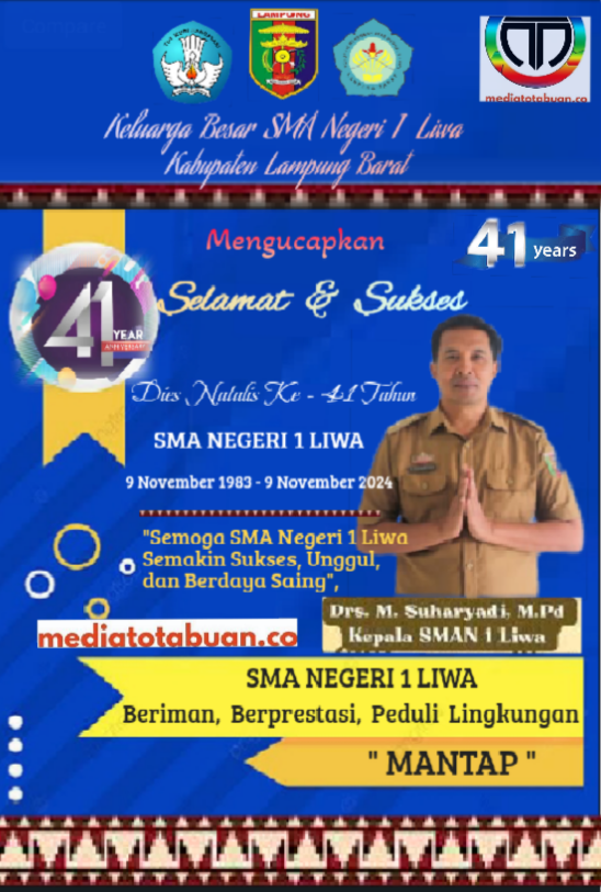 Selamat Hari Jadi SMA Negeri 1 Liwa Lampung Barat Ke – 41 Tahun, 9 November 1983 – 9 November 2024