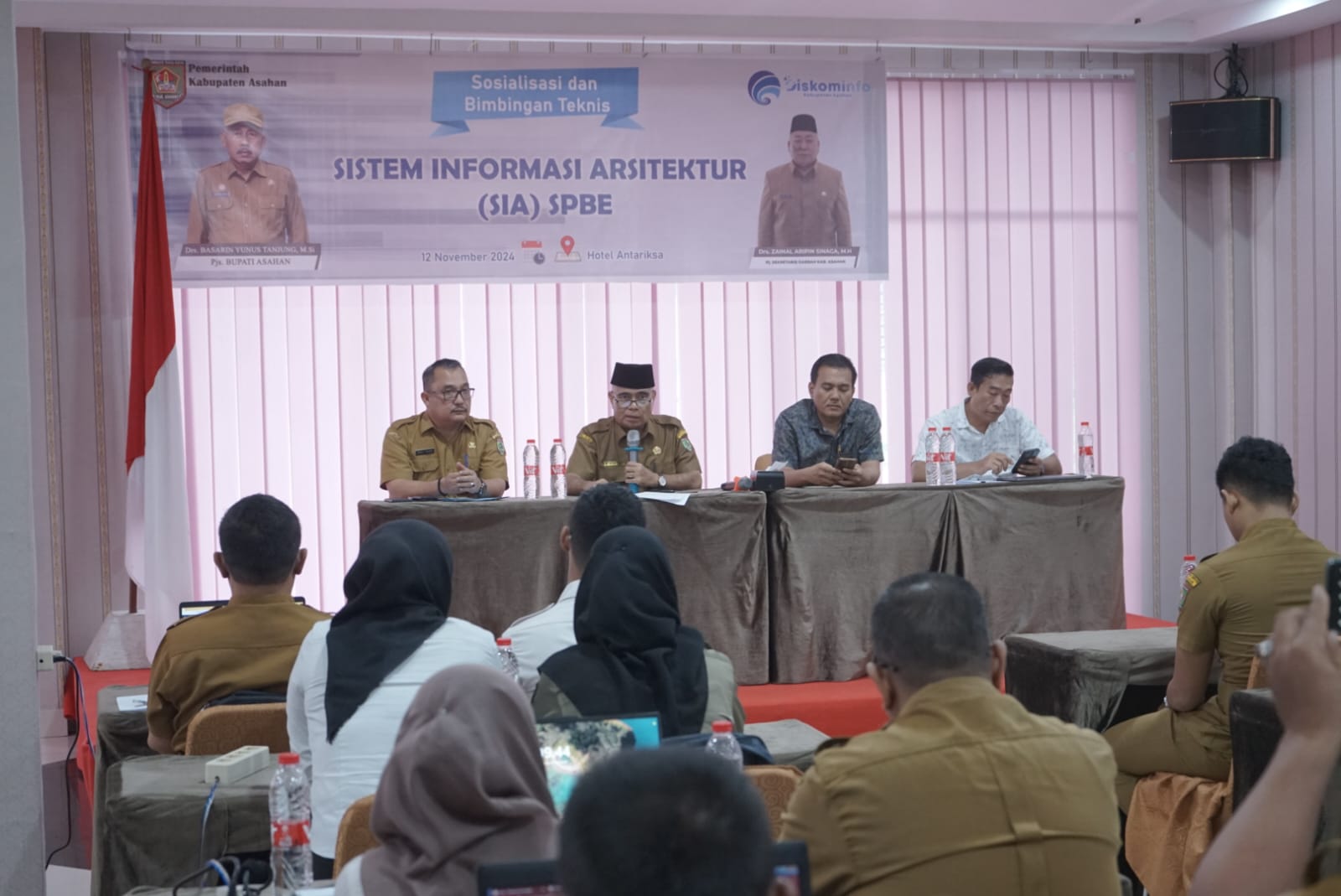 MEDIATOTABUAN.CO – ASAHAN – Pemerintah Kabupaten Asahan melalui Dinas Komunikasi dan Informatika Asahan menggelar Sosialisasi dan Bimbingan Teknis Sistem Informasi Arsitektur (SIA) SPBE di Aula Hotel Antariksa Asahan, Selasa (12/11/2024). Tampak hadir Pjs. Bupati Asahan dalam hal ini di wakili Asisten Perekonomian dan Pembangunan Bupati Asahan, PLT. Kadis Kominfo Asahan, Narasumber Dinas Komunikasi dan Informatika Sumut dan peserta OPD yang berhadir.