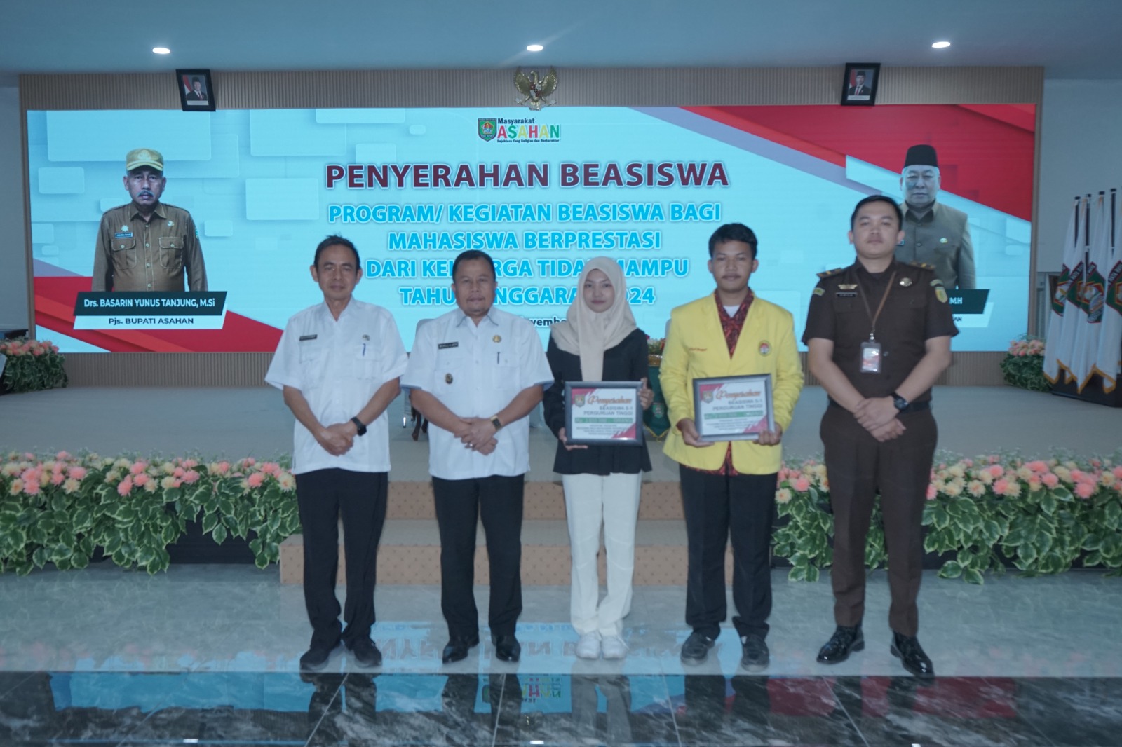 Pemerintah Kabupaten Asahan menyerahkan Beasiswa Bagi Mahasiswa Berprestasi dari Keluarga Tidak Mampu