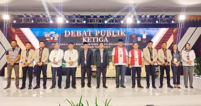 MEDIATOTABUAN, BOLMONG – Komisi Pemilihan Umum (KPU) Kabupaten Bolaang Mongondow (Bolmong), kembali menyelenggarakan debat publik ketiga calon Bupati dan Wakil Bupati dalam Pemilihan Kepala Daerah (Pilkada) 2024, Senin (18/11/2024).