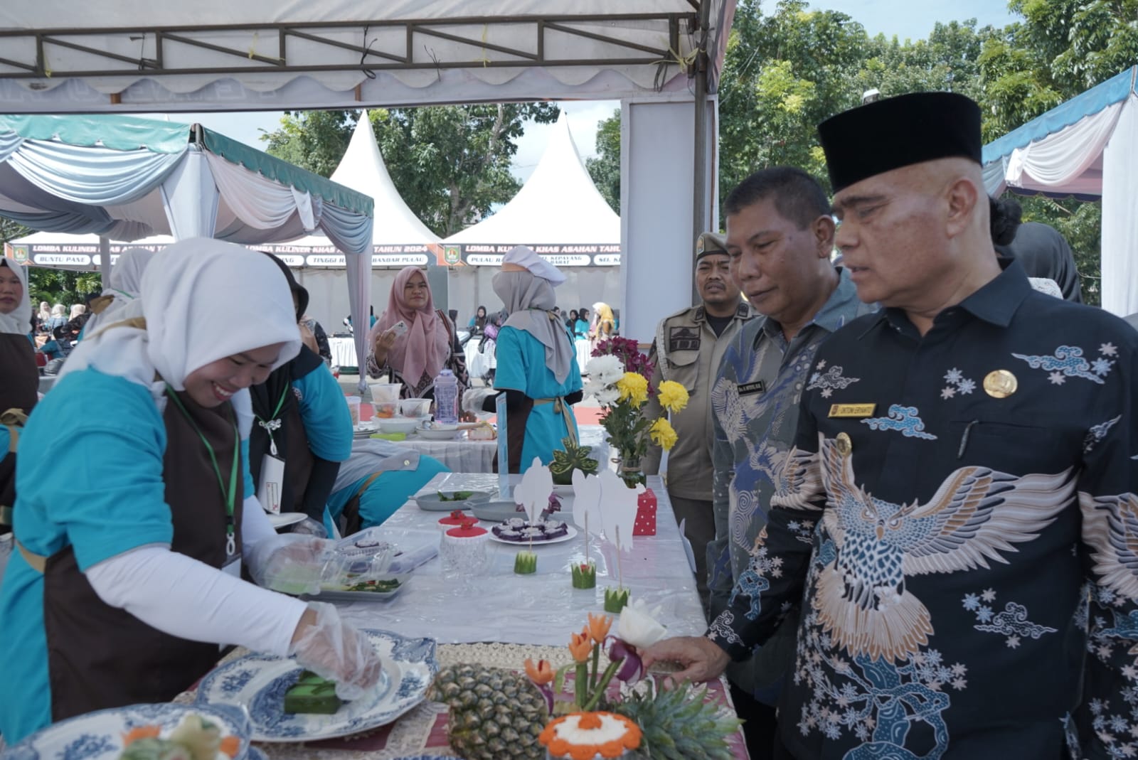 MEDIATOTABUAN.CO – ASAHAN – Bupati Asahan yang dalam hal ini diwakili oleh Asisten Perekonomian dan Pembangunan membuka secara resmi lomba kuliner khas Asahan 2024 di halaman Kantor Disporapar Kabupaten Asahan, Kamis (05/12/2024). Tampak hadir Asisten Perekonomian dan Pembangunan Kabupaten Asahan, Kepala Dinas Disporapar Kabupaten Asahan, para Camat Se-Kabupaten Asahan, TP PKK Kabupaten Asahan, DWP Kabupaten Asahan, Dewan Juri, para Peserta Lomba Kuliner Khas Asahan dan tamu undangan lainnya.