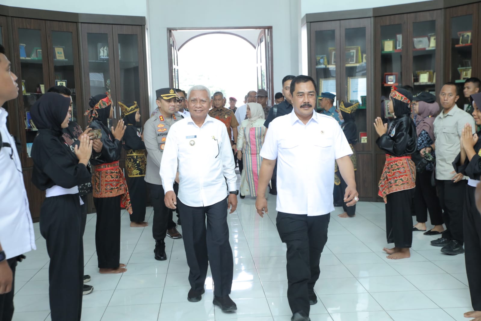 MEDIATOTABUAN.CO – ASAHAN – Bupati Asahan H. Surya, B.Sc bersama dengan Wakil Bupati Asahan Taufik Zainal Abidin Siregar., S.Sos, M.Si menyambut kedatangan Menteri Imigrasi dan Pemasyarakatan Republik Indonesia Jenderal Pol (Purn) Drs. Agus Andrianto., SH, MH beserta rombongan Bertempat di Aula Melati Kantor Bupati Asahan, Kabupaten Asahan di Kabupaten Asahan, Kamis (19/12/2024).