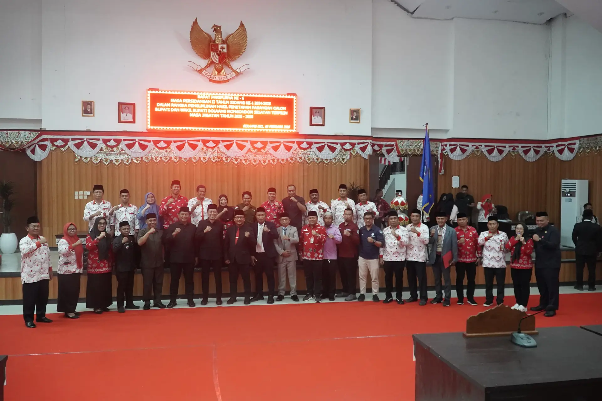 MEDIATOTABUAN, BOLSEL – DPRD Kabupaten Bolaang Mongondow Selatan, gelar paripurna pengumuman hasil penetapan Paslon Bupati dan Wakil Bupati Bolsel Terpilih, periode 2025-2030.