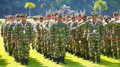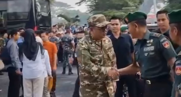 Dengan mengenakan seragam Komcad, Randito bergabung bersama para wakil kepala daerah lainnya dalam sesi pengarahan.