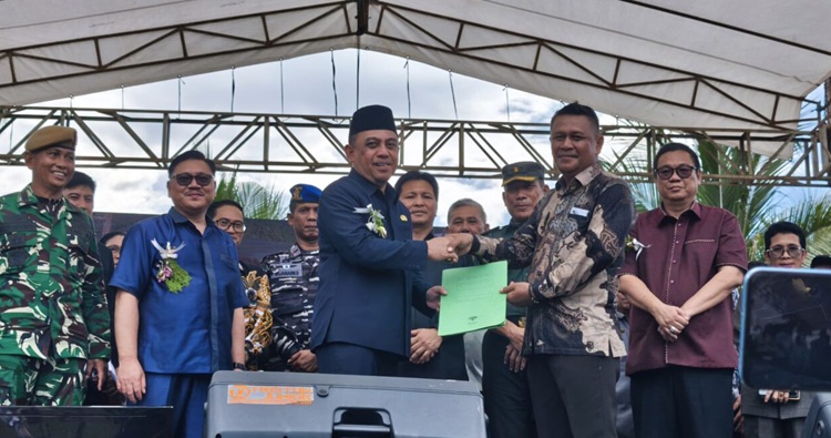 Penyerahan bantuan oleh Bupati Bolmong Yusra Alhabsyi. (Foto: Yambat)