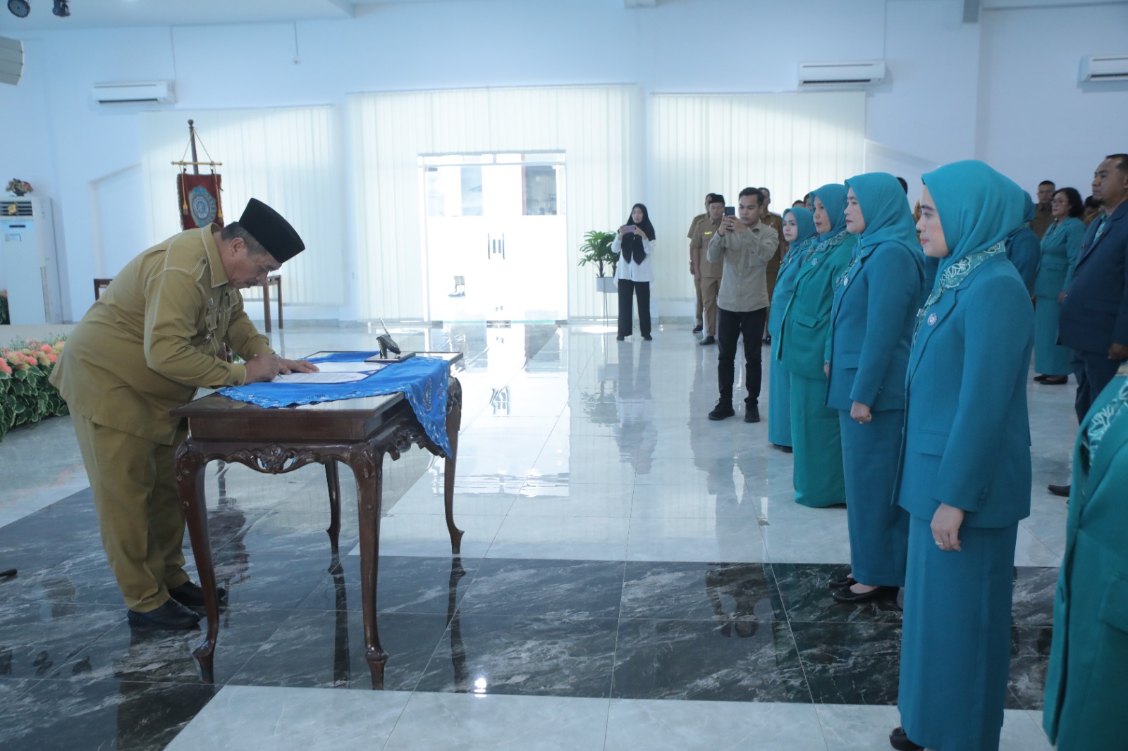 MT, ASAHAN – Bupati Asahan, Taufik Zainal Abidin, S.Sos., M.Si melantik pengurus Tim Penggerak Pemberdayaan dan Kesejahteraan Keluarga (TP. PKK) Kabupaten Asahan masa bakti tahun 2025-2030 yang berlangsung di aula Melati Kantor Bupati Asahan pada Selasa (06/05/2025).