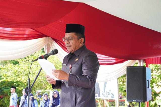 Terkait peringatan Hardiknas 2025, Assisten I Alsyafri juga membacakan sambutan Menteri Pendidikan Dasar dan Menengah (Mendikdasmen) Abdul Mut’i.