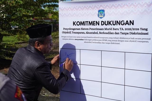 Di akhir rangkaian upacara, dilakukan penandatanganan soal komitmen dukungan untuk penyelenggaraan sistem penerimaan murid baru tahun anggaran 2025/2026 yang objektif, transparan, akuntabel, dan berkeadilan oleh Alsyafri U Kadullah.***