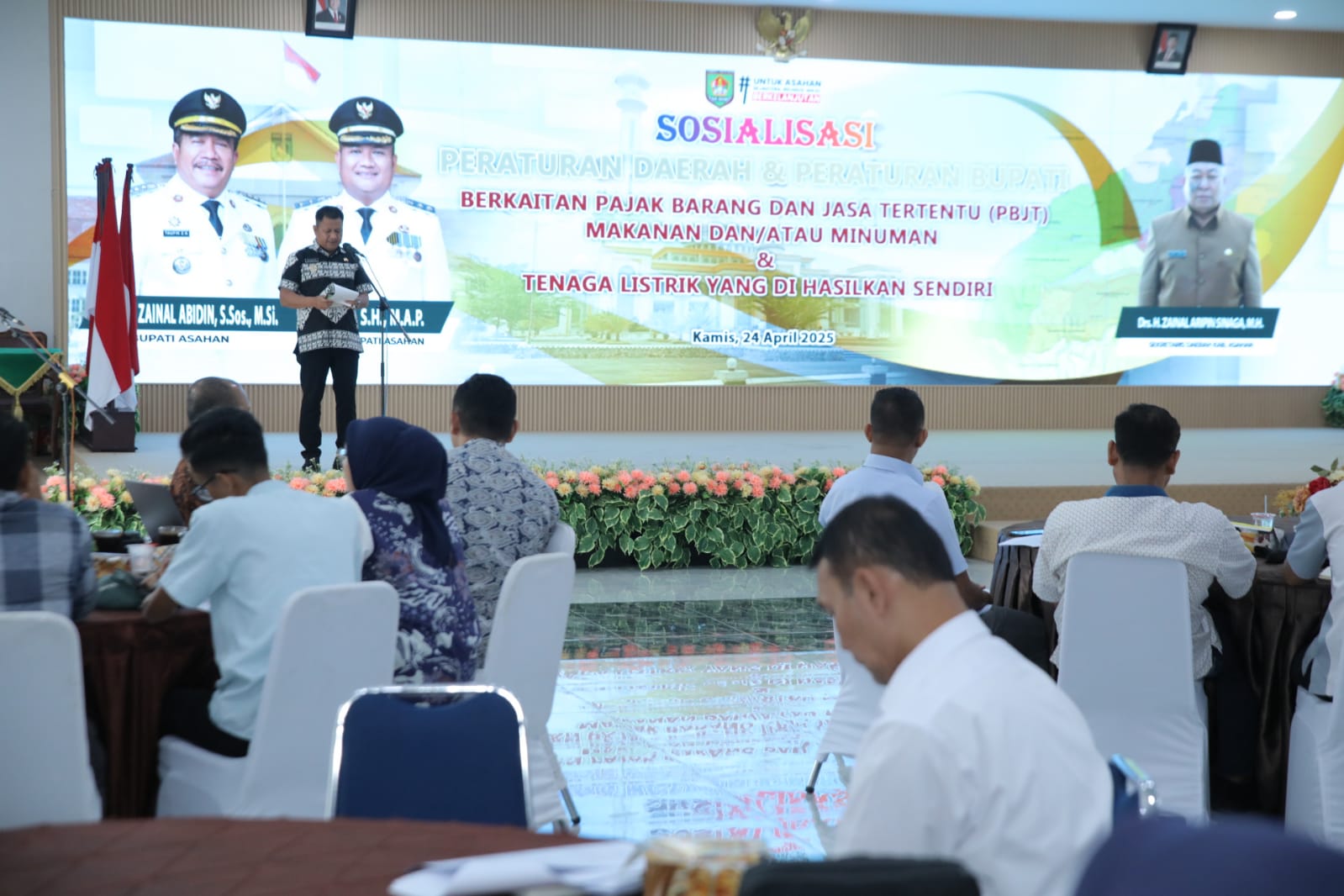 Pemerintah Kabupaten Asahan melalui Badan Pendapatan Daerah Kabupaten Asahan melaksanakan sosialisasi peraturan daerah dan peraturan Bupati berkaitan Pajak Barang dan Jasa Tertentu (PBJT) makanan dan/atau minuman serta tenaga listrik yang dihasilkan sendiri. Acara ini dibuka oleh Wakil Bupati Asahan Rianto, SH., MAP dan dihadiri oleh asisten administrasi umum, staf ahli ekonomi keuangan dan pembangunan, serta para peserta sosialisasi bertempat di aula melati Kantor Bupati Asahan Kamis (24/04/2025).