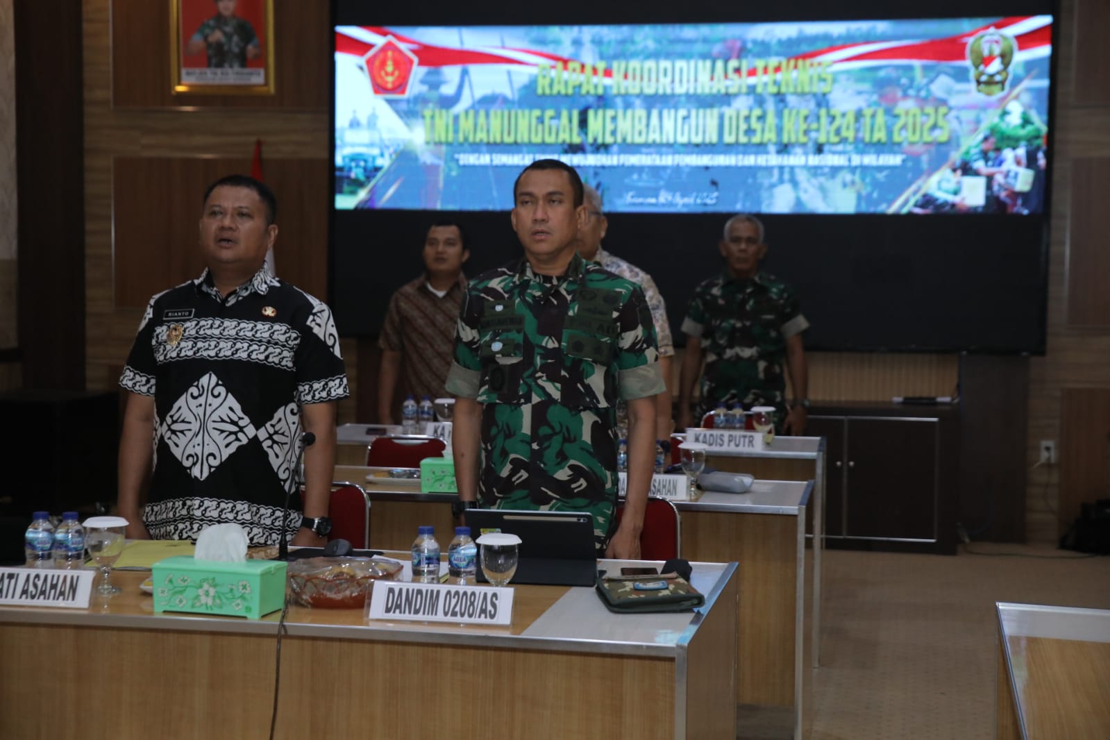 Rakornis dipimpin langsung oleh Waaster Kasad Brigjen TNI Taufiq Shobri yang berlangsung di Ruang Aula Nuri Makodim 0208/AS pada Kamis (24/04/2025). Hadir dalam kegiatan tersebut Dandim 0208/As Letkol Inf M. Bassarewan, S. Hub. Int, Sekda Kab. Asahan Drs. Zainal Aripin Sinaga, MH, dan Kepala Baperida Kabupaten Asahan diwakili oleh Hadi Prasetya Penata Ahli Perencana Baperida Kabupaten Asahan.