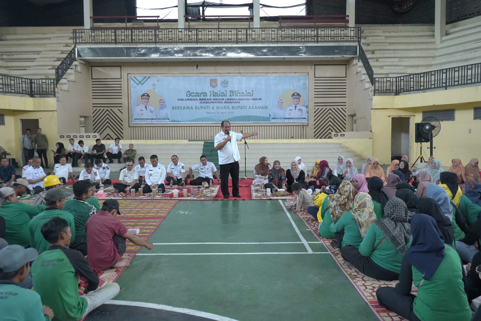 MT, ASAHAN – Bupati Asahan Taufik Zainal Abidin, S.Sos., M.Si bersama Wakil Bupati Rianto, SH., MAP memberikan salam hormat dan apresiasi kepada ratusan petugas kebersihan Dinas Lingkungan Hidup (DLH) Asahan.Hal tersebut disampaikan Bupati dan Wakil pada acara halal bihalal keluarga besar DLH yang bertempat di Gedung Serbaguna Kisaran, Rabu (23/04/2025). “Kami berikan salam hormat kepada seluruh petugas kebersihan, karena kalian memiliki peran penting dalam menjaga wajah dan kebersihan kota Kisaran”, ucap Bupati.