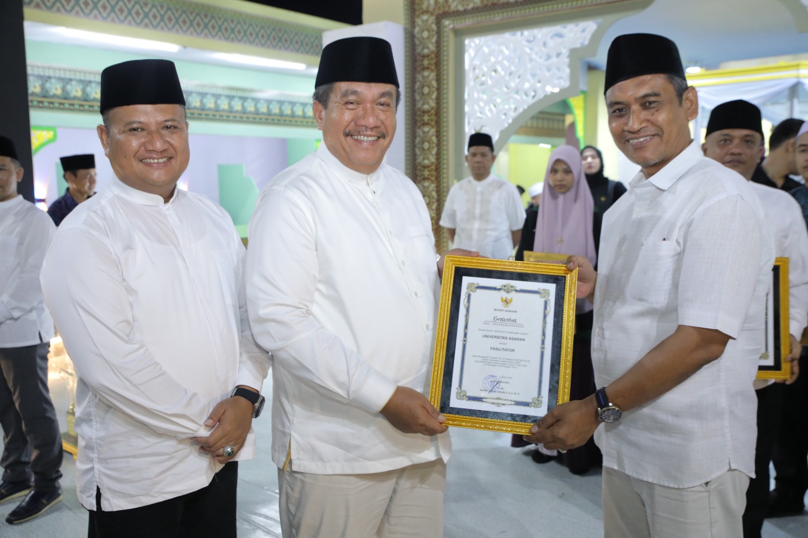 MT, ASAHAN – Bupati Asahan, Taufik Zainal Abidin Siregar, S.Sos., M.Si. memberikan biaya umroh kepada 4 orang pemenang Musabaqah Tilawatil Quran Nasional (MTQN) ke-56 Tingkat Kabupaten Asahan, Senin malam, (21/04/2025) di Lapangan Sepak Bola Universitas Asahan (UNA), Kelurahan Kisaran Naga, Kecamatan Kota Kisaran Barat.