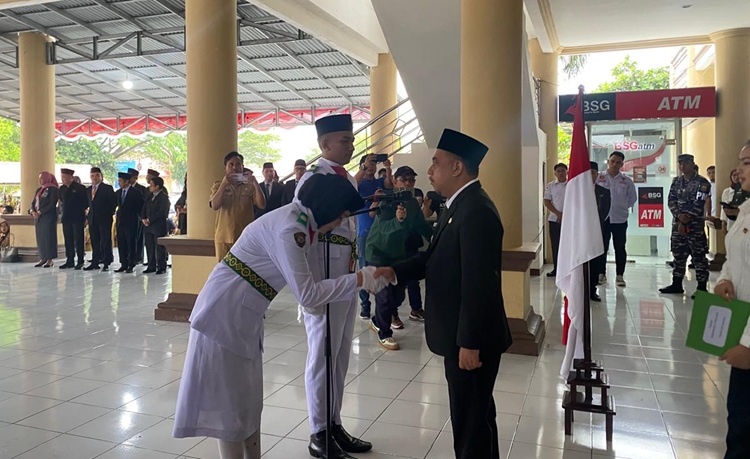 Pengukuhan Purna Paskibraka Tahun 2024 yang bertugas pada Upacara 17 Agustus dan sejumlah upacara tahun 2024/2025 ini, dilaksanakan di halaman Kantor Sekretariat Daerah (Setda) Bolmong.