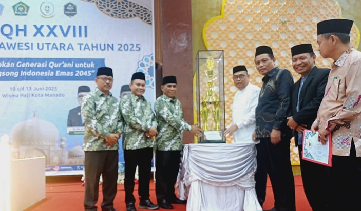 Kegiatan yang dilaksanakan di Aula Asrama Haji Manado, Jumat, (13/06/2025) tersebut, kontingen kafilah Kota Kotamobagu, berhasil mempertahankan predikat Juara Umum untuk kedua kali secara beruntun.