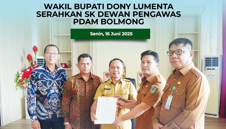 Bolmong – Ketiga personil Dewan Pangawas (Dewas) Perusahaan Daerah Air Minum (PDAM) Kabupaten Bolaang Mongondow (Bolmong) Tahun 2025, resmi menerima SK Bupati Bolmong, Senin (16/06/2025).