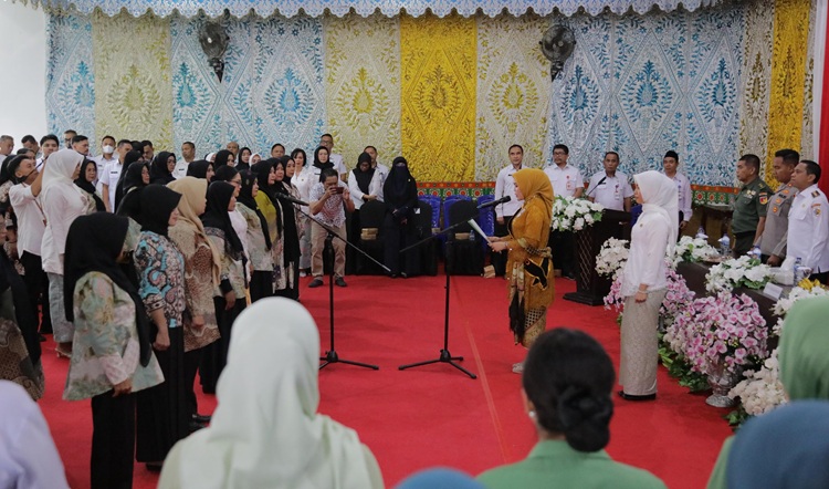 Kotamobagu – Walikota Kotamobagu, Dokter Weny Gaib, menghadiri Pelantikan Pengurus Dewan Kerajinan Nasional Daerah (Dekranasda) Kota Kotamobagu, Kelompok Kerja Bunda PAUD Kota Kotamobagu dan Tim Pembina Posyandu Kota Kotamobagu, di Aula Rumah Dinas (Rudis) Walikota Kotamobagu, Rabu (18/06/2025).