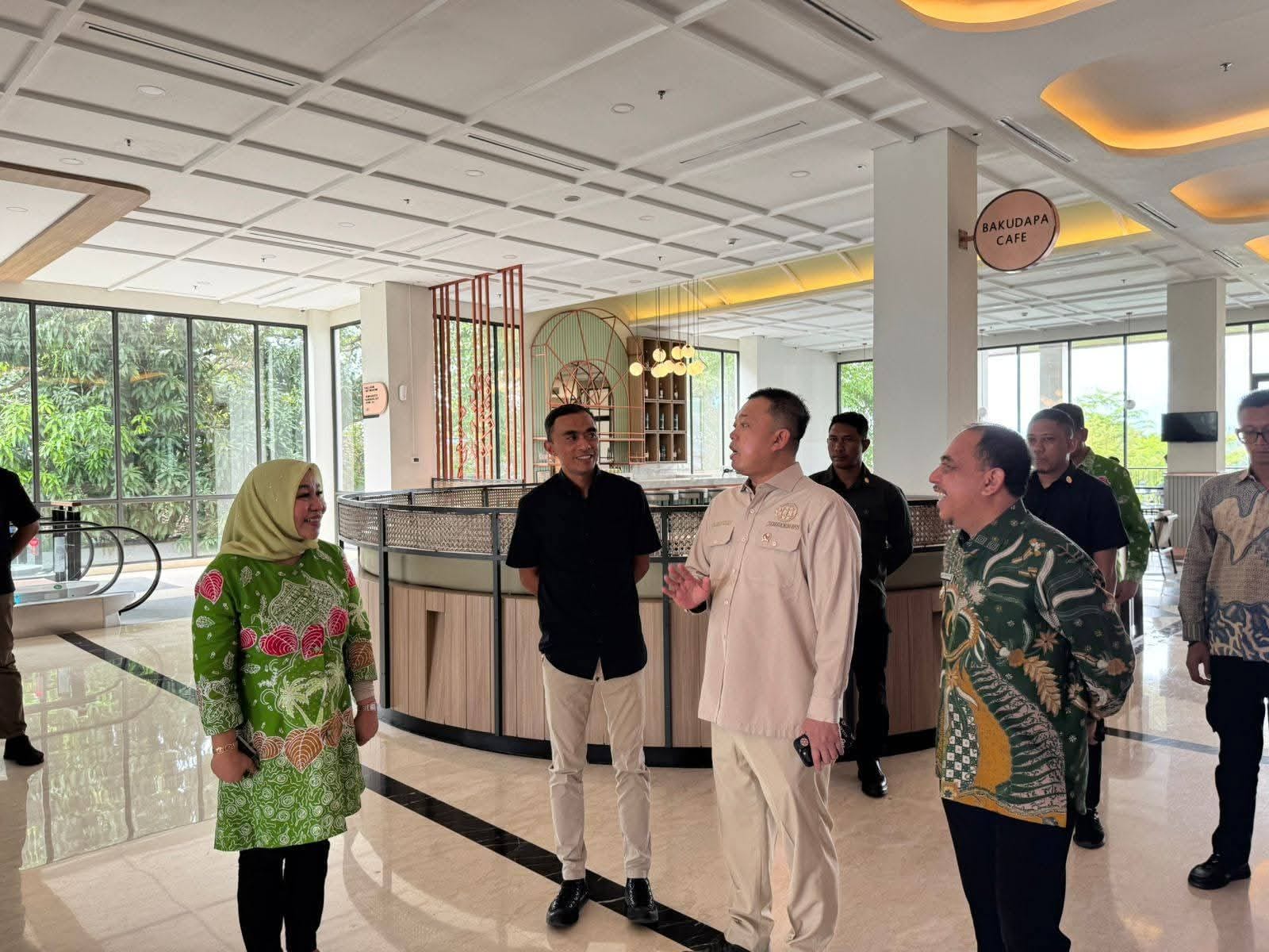 Di antara sorot mata yang menyaksikan dan barisan pejabat yang turut, Yusra Alhabsyi, Bupati Bolaang Mongondow, menyambut kedatangan Menteri Agraria dan Tata Ruang/Kepala BPN RI, Nusron Wahid.