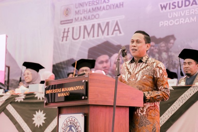 “Saya atas nama pribadi dan atas nama jajaran Pemerintah Daerah Kota Kotamobagu ingin menyampaikan ucapan selamat dan sukses kepada Wisudawan dan Wisudawati, yang siang hari ini, baru saja mengikuti prosesi Wisuda Periode VII Tahun 2025, Program Sarjana, Diploma, dan Profesi pada Universitas Muhammadiyah Manado,” kata dr. Weny Gaib, Sp.M.