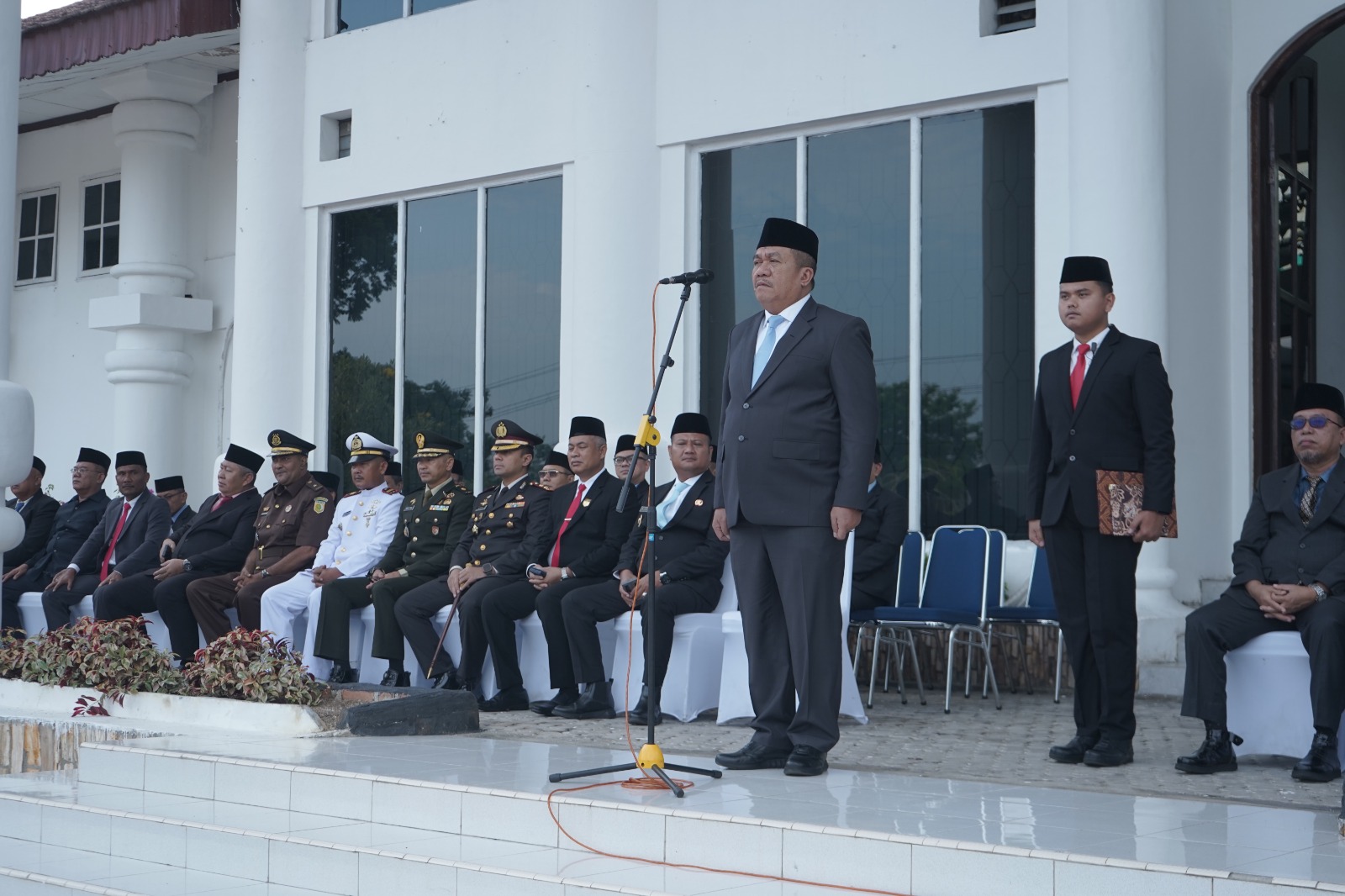 MT, ASAHAN – Bupati Asahan, Taufik Zainal Abidin, S.Sos., M.Si pimpin upacara Hari Lahir Pancasila di halaman kantor Bupati Asahan, Sabtu (01/06/2025)