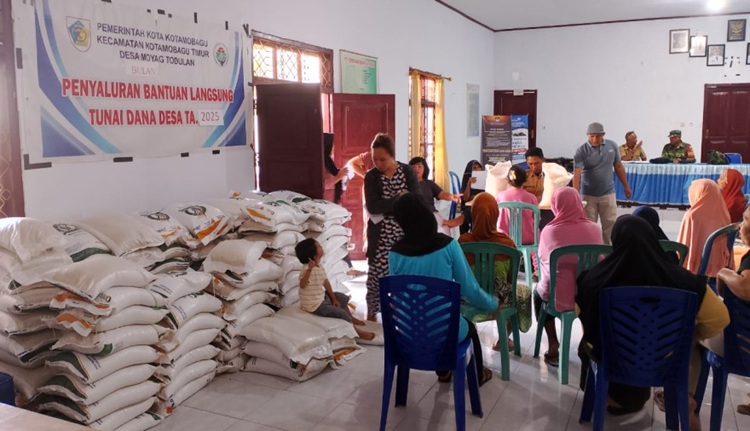 KOTAMOBAGU – Pemerintah Desa Moyag Todulan, menyerahkan bantuan pangan beras kepada sejumlah warga penerima.