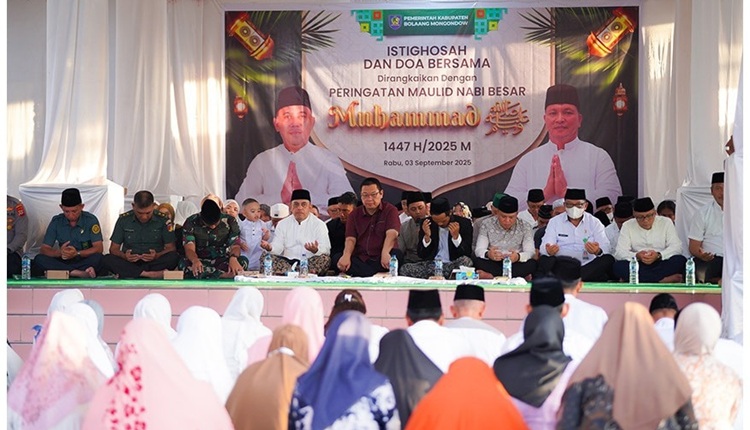 Bolmong – Pemerintah bersama Masyarakat Kabupaten Bolaang Mongondow (Bolmong), menggelar Istighosah dan Doa Bersama dirangkaikan dengan Peringatan Maulid Nabi Muhammad SAW 1447 Hijiriah atau 2025 Masehi, Rabu (03/09/2025).