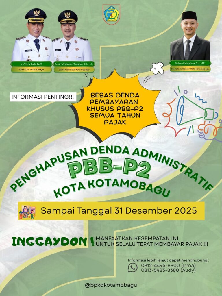 KOTAMOBAGU – Pemerintah Kota (Pemkot) Kotamobagu memberikan kabar baik bagi masyarakat dengan menghapus denda administrasi Pajak Bumi dan Bangunan (PBB) Perdesaan dan Perkotaan.