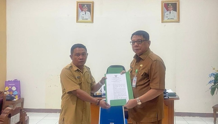 Meidin Batalipu, diangkat sebagai Pejabat Kepala Desa Lolan Dua melalui Surat Keputusan (SK) yang diserahkan Sekretaris Daerah (Sekda) Bolmong, Abdullah Mokoginta, diruang kerjanya, Selasa (07/10/2025).