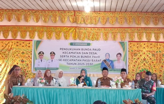 Bolmong – Bunda Pendidikan Anak Usia Dini (PAUD) Kecamatan dan desa se-Passi Barat dan Timur, resmi di Kukuhkan Bunda PAUD Kabupaten Bolaang Mongondow (Bolmong), Ny. Kalsum Alhabsyi, Selasa (21/10/2025).