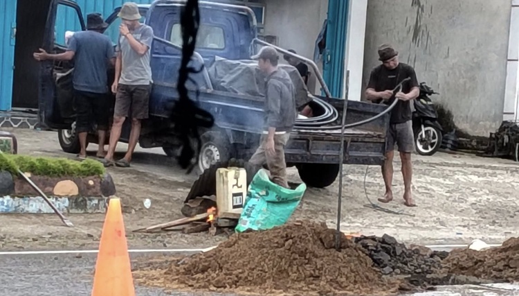 Perbaikan jaringan pipa air di Kelurahan Matali. (Foto: Ipo)