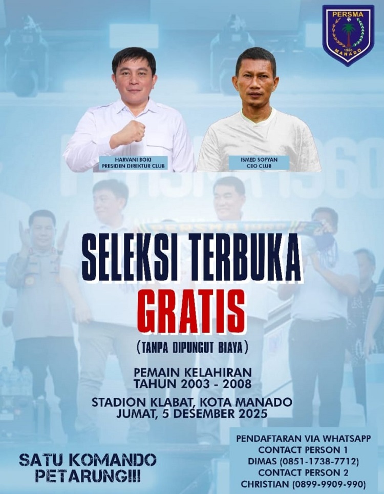 “Seleksi ini akan merata di Sulut, jika anak-anak ini punya kualitas, Persma akan memberikan jalan,” kata Harvani, Jumat (28/11/2025).