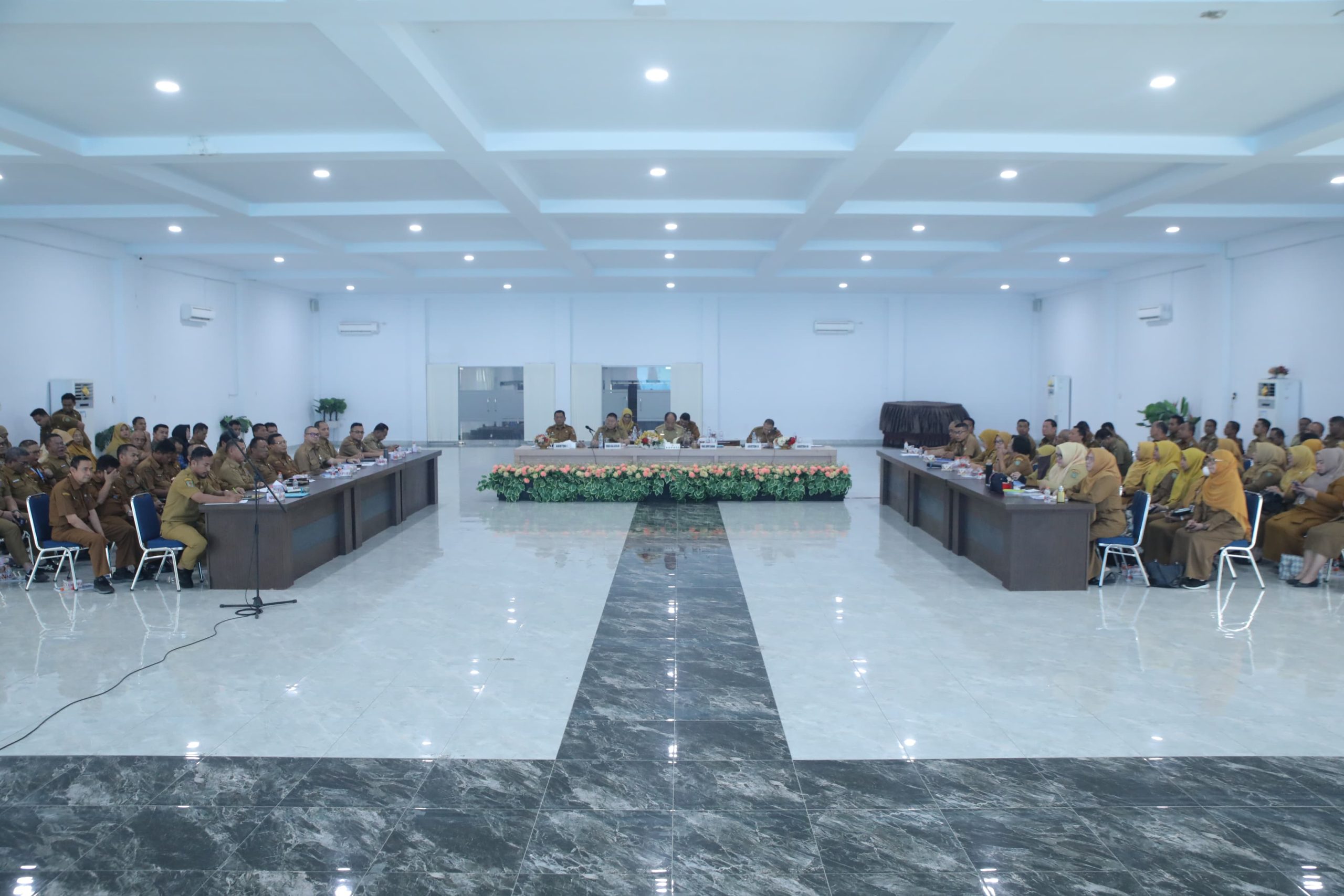 MT, ASAHAN – Pemerintah Kabupaten Asahan menggelar Rapat Koordinasi Pemerintahan (Rakorpem) Bulan Desember 2025 di Aula Melati Kantor Bupati Asahan, Senin (15/12/2025). Rakorpem dipimpin langsung oleh Bupati Asahan Taufik Zainal Abidin, S.Sos., M.Si., dan dihadiri Wakil Bupati Asahan Rianto, S.H., M.AP., Sekretaris Daerah Kabupaten Asahan, para Asisten, Staf Ahli, seluruh Kepala OPD, Camat, serta Kepala Puskesmas se-Kabupaten Asahan. Kegiatan ini menjadi forum evaluasi akhir tahun sekaligus penguatan koordinasi pemerintahan menjelang Natal dan Tahun Baru 2026.