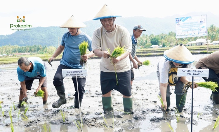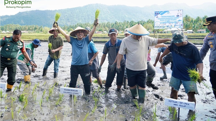 Bolmong – Gubernur Sulawesi Utara (Sulut), Mayjen TNI (Purn) Yulius Selvanus, bersama Bupati Bolaang Mongondow (Bolmong), Yusra Alhabsyi, melakukan gerakan tanam padi, Jumat (23/01/2026).