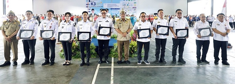 Kegiatan itu juga diseliring dengen penyerahan berbagai penghargaan dari Gubernur YSK kepada sejumlah kepala daerah yang dinilai berhasil membina dan mengimplementasikan K3 selama 2025.