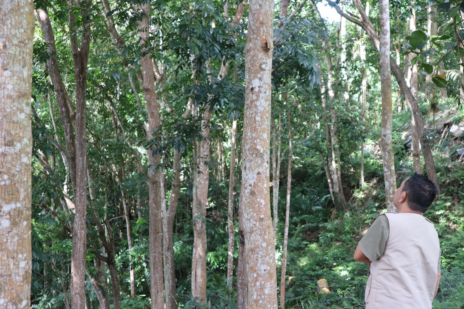 Awalnya, saya mengira suara adzan tadi berasal dari desa lingkar tambang. Ternyata, dari sinilah ia berkumandang—dari jantung hutan yang perlahan dipulihkan, dan menjulang pohon rindang, serta berhias tumbuhan jenis pakis yang meninggi.