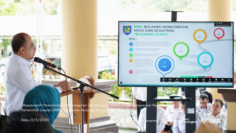 Bolmong – Pemerintah Kabupaten (Pemkab) Bolaang Mongondow (Bolmong), melaksanakan Musyawarah Perencanaan Pembangunan (Musrenbang) penyusunan Rencana Kerja Pemerintah Daerah (RKPD) Kabupaten Bolmong Tahun 2027, Rabu (11/03/2026).