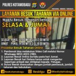 Polres Kotamobagu Buka Layanan Via Online untuk Besuk Tahanan Berita, BERITA UTAMA, DAERAH, HUKRIM, KOTAMOBAGU|22/05/2020by Administrator Mediatotabuan.co, Kotamobagu – Dimasa Cvovid-19, Polres Kotamobagu melarang melakukan kunjungan di sel