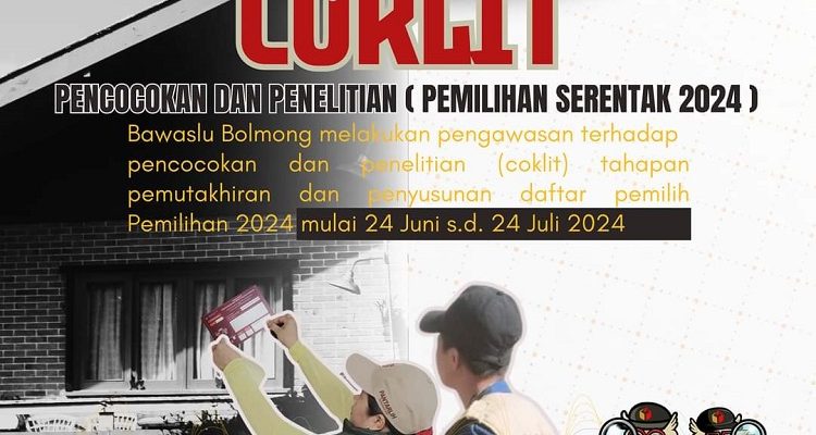 Bawaslu Bolmong Kembali Ingatkan Poin Penting Proses Coklit, Ini Selengkapnya BOLMONG|10/07/202426/07/2024by Administrator MEDIATOTABUAN, BOLMONG – Badan Pengawas Pemilihan Umum (Bawaslu) Kabupaten Bolaang Mongondow, kembali