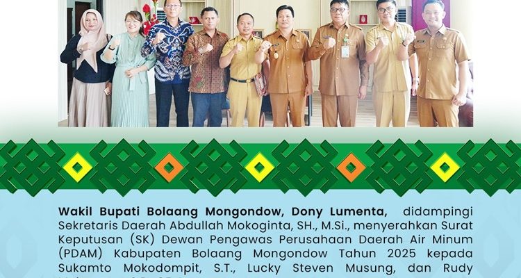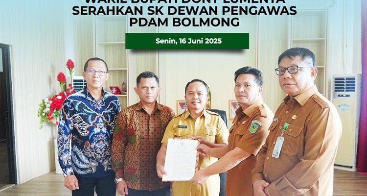 Dony Lumenta Serahkan SK Dewan Pengawas PDAM Bolmong Berita, BERITA UTAMA, BOLMONG, DAERAH, Pemerintahan|16/06/202518/06/2025by Administrator Bolmong – Dewan Pangawas (Dewas) Perusahaan Daerah Air Minum (PDAM) Kabupaten Bolaang