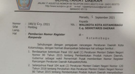 Dua Ranperda Kota Kotamobagu Siap Disahkan Jadi Perda Berita, BERITA UTAMA, DAERAH, KOTAMOBAGU, POLITIK|02/08/202102/08/2021by Administrator mediatotabuan.co, Kotamobagu – Dua Rancangan Peraturan Daerah (Ranperda) siap disahkan menjadi Peraturan