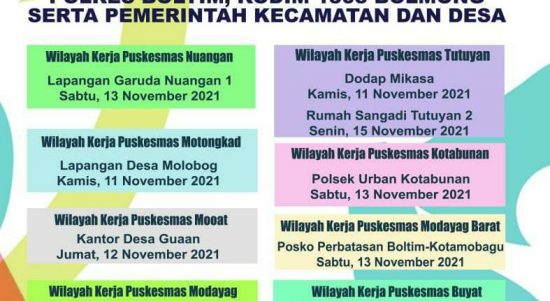 Rilis Jadwal Vaksinasi Covid-19 di Boltim Berita, BERITA UTAMA, BOLTIM, COVID-19, DAERAH, Kesehatan, LIPU' NATON, Nasional, Pemerintahan, Sulawesi Utara|09/11/202116/11/2021by Administrator mediatotabuan.co, Boltim – Pemerintah Kabupaten (Pemkab) Bolaang Mongondow Timur (Boltim), melalui Dinas