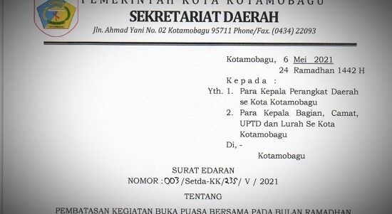 Surat Edaran Larangan Open Hause Bagi ASN Kotamobagu Berita, BERITA UTAMA, DAERAH, KOTAMOBAGU, Pemerintahan|07/05/202108/05/2021by Administrator mediatotabuan.co, Kotamobagu – Pemerintah Kota (Pemkot) Kotamobagu, pada perayaan lebaran ini melarang