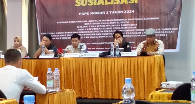 KPU Boltim Sosialisasi Tahapan Pilkada 2024, Ini PKPU nya BERITA UTAMA|24/04/202429/04/2024by Administrator MEDIATOTABUAN, BOLTIM – KPU Bolaang Mongondow Timur, telah sosialisasikan PKPU nomor 2