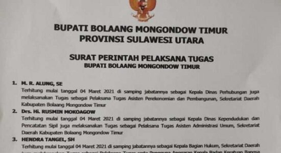 SSM-OPPO Mulai Lakukan Pembenahan Internal, Tujuh Pejabat Ditunjuk, Ini Datanya Berita, BERITA UTAMA, BOLTIM, DAERAH, Pemerintahan|04/03/202104/03/2021by Administrator mediatotabuan.co, Boltim – Bupati dan Wakil Bupati Bolaang Mongondow Timur (Boltim) Sam